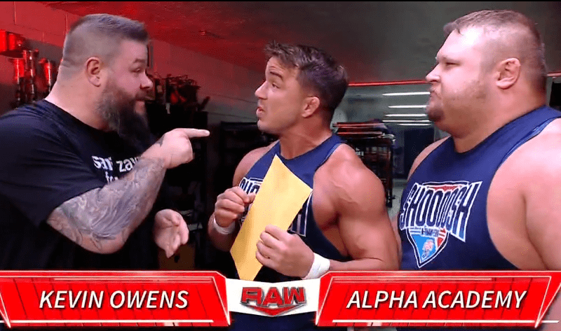 查德盖博VS以西结 凯文欧文斯与街头小子后台查看以西结审定讲演,讲演显现检测结果被烧烤酱污染,街头小子表示要将以西结打出原型!