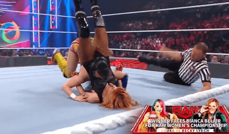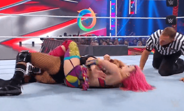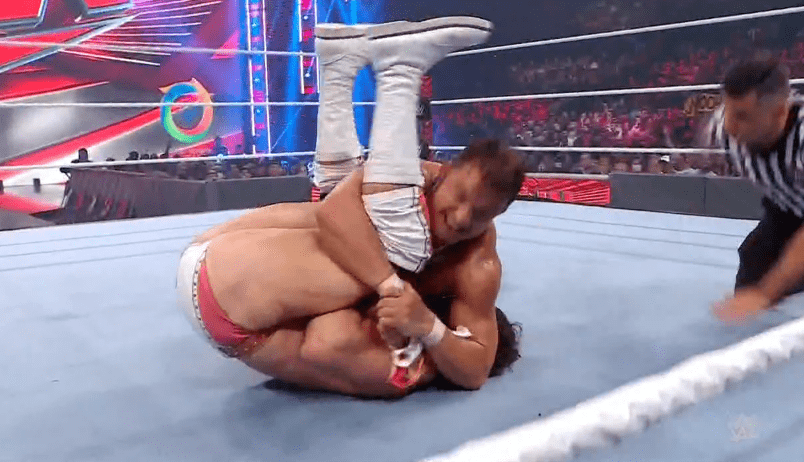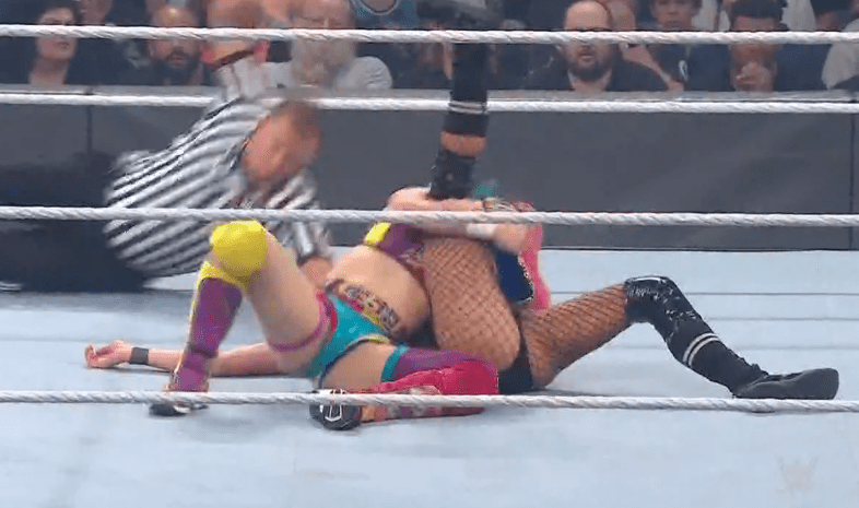 索尼娅回击一记铁膝盖,双肩压地两秒