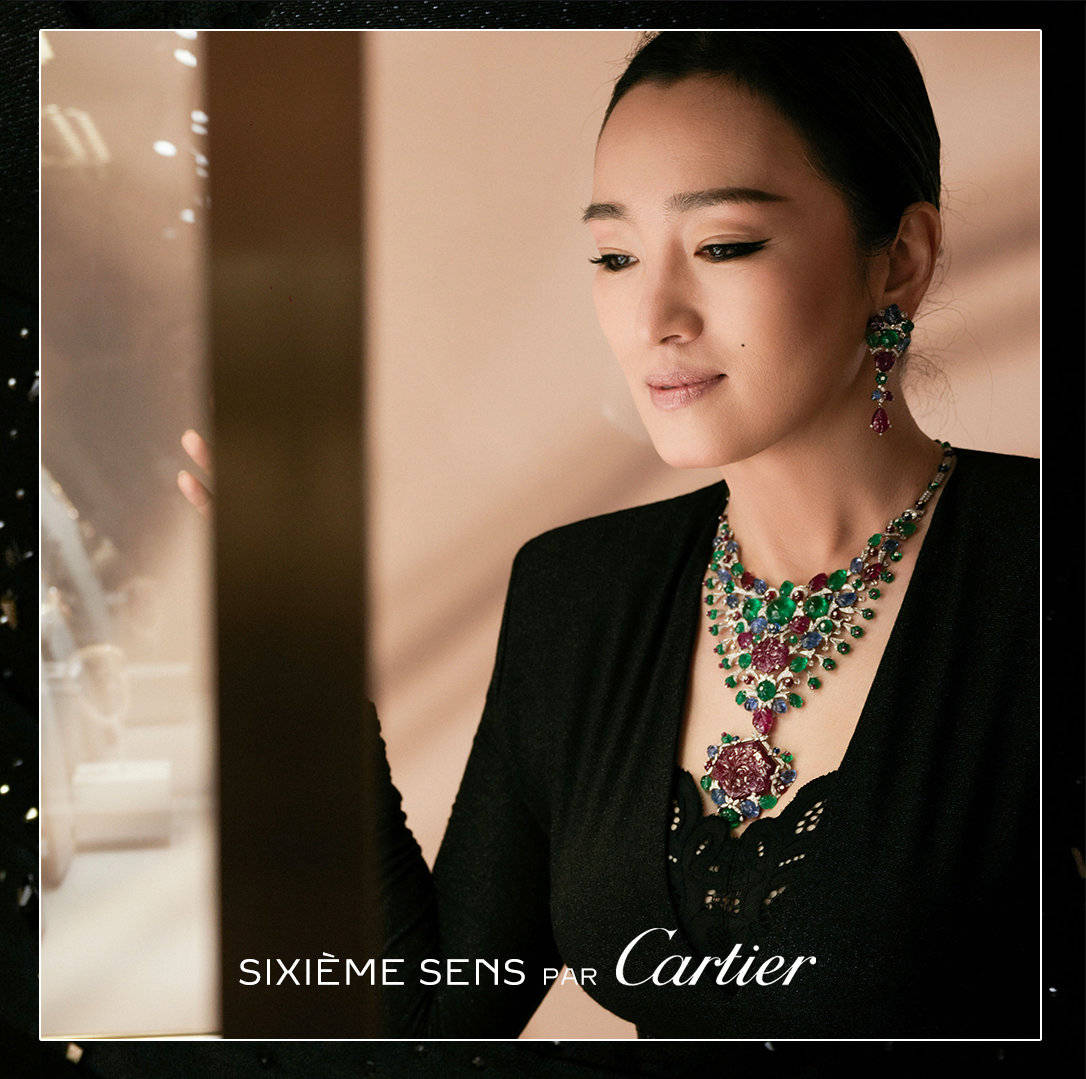 在参观全新Sixième Sens Par Cartier高级珠宝展览时,作为卡地亚新晋全球高级珠宝大使的巩俐,佩戴了Sixième Sens Par Cartier高级珠宝系列Udyana项链、耳环、戒指及腕表。