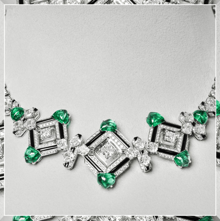 全新SIXIME SENS PAR CARTIER高级珠宝系列MIRYOKU项链 MIRYOKU项链,重复的魅力: 几何图形重复循环,宛如在内心构建出一座带有魔幻的迷宫,黑色与绿色的大胆碰撞,卡地亚应用醒目设计引发猎奇,激荡内心炽烈情感。