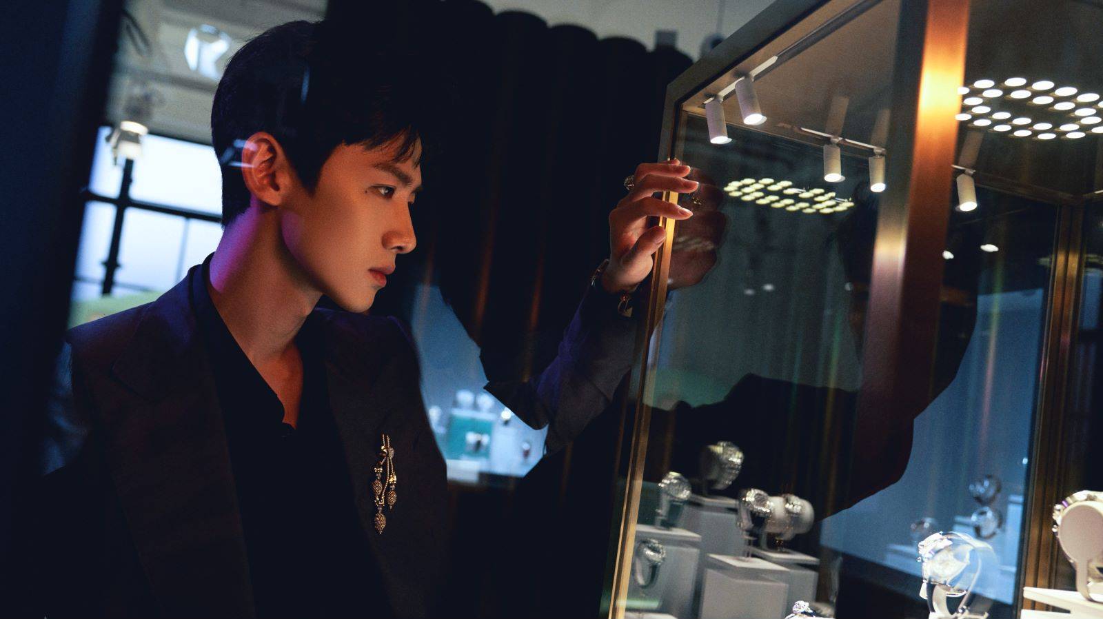列席卡地亚全新Sixième Sens Par Cartier高级珠宝展览,白敬亭佩戴了卡地亚古董珍藏系列胸针、戒指及Pasha de Cartier系列腕表。