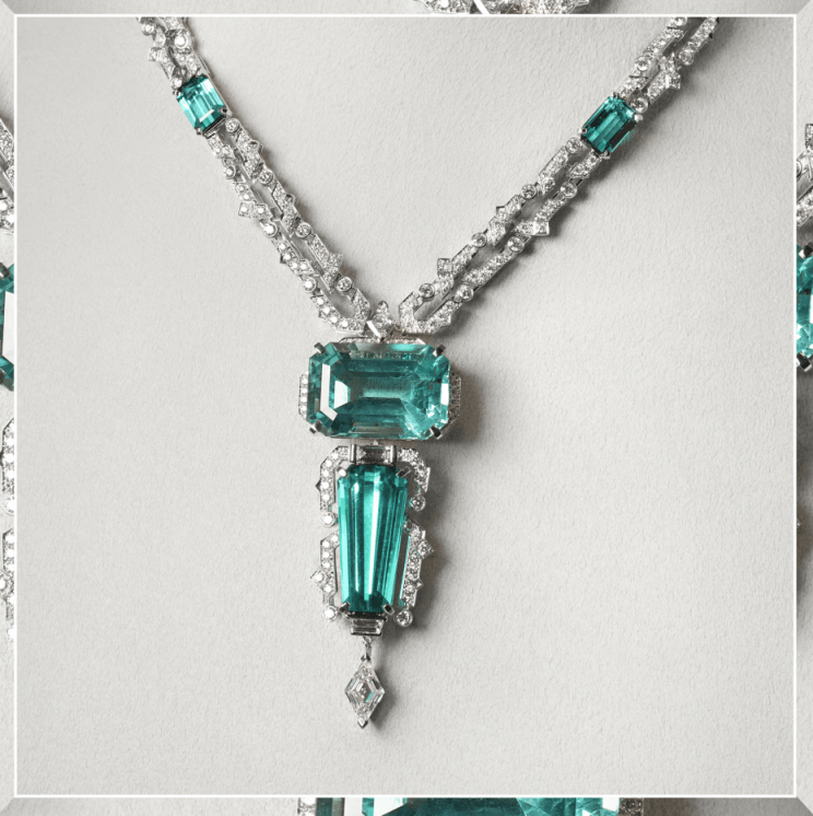 全新SIXIME SENS PAR CARTIER高级珠宝系列SYNAPSE项链 SYNAPSE项链,感官神经: 灵感源自神经系统的突触,以四颗鹤立鸡群的宝石和钻石链接彼此,组成通达各种感官的笼统表白,一颗绿色祖母绿形切割绿柱石与三颗碧玺醒目突出感官信息的传导意义,在单颜色的叠加中冲击感官极限。