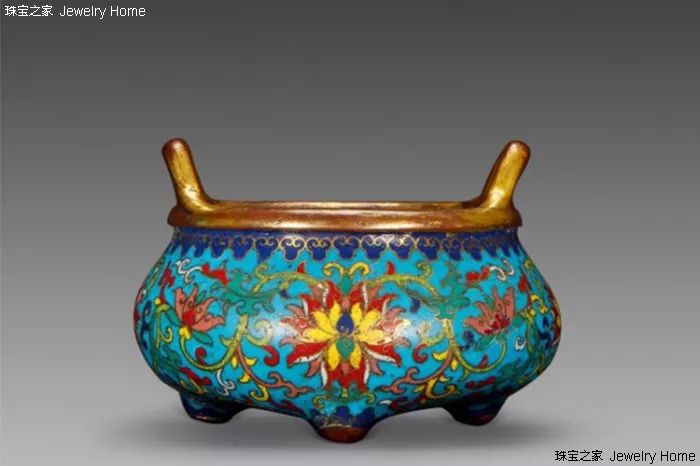 清乾隆铜胎掐丝珐琅缠枝莲纹三足炉 掐丝珐琅是一种运用细银或金细线勾勒出设计轮廓的技术,然后将其填充搪瓷。随后将其放入搪瓷凝结的窑中。掐丝珐琅的丝越细,图案越精致。大家熟习的“景泰蓝”其实就是掐丝珐琅,由于早期工匠只为皇家效劳,所以运用的珐琅釉多以蓝色为主,故而得名“景泰蓝”。另外,景泰蓝的胎体普通为铜。
